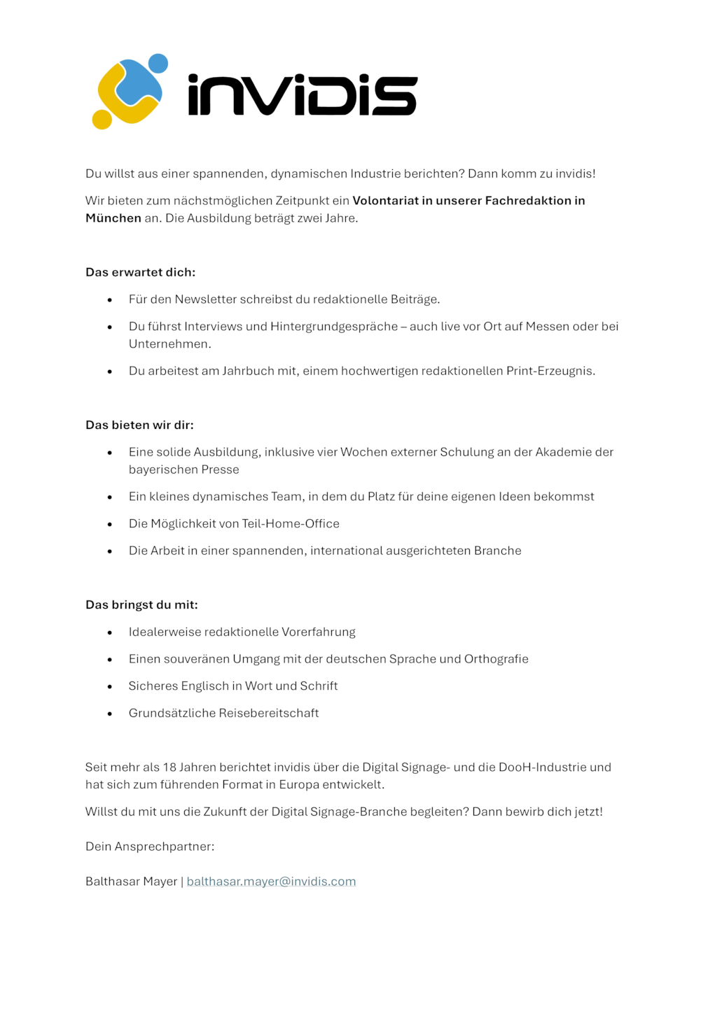 Du willst aus einer spannenden, dynamischen Industrie berichten? Dann komm zu invidis!